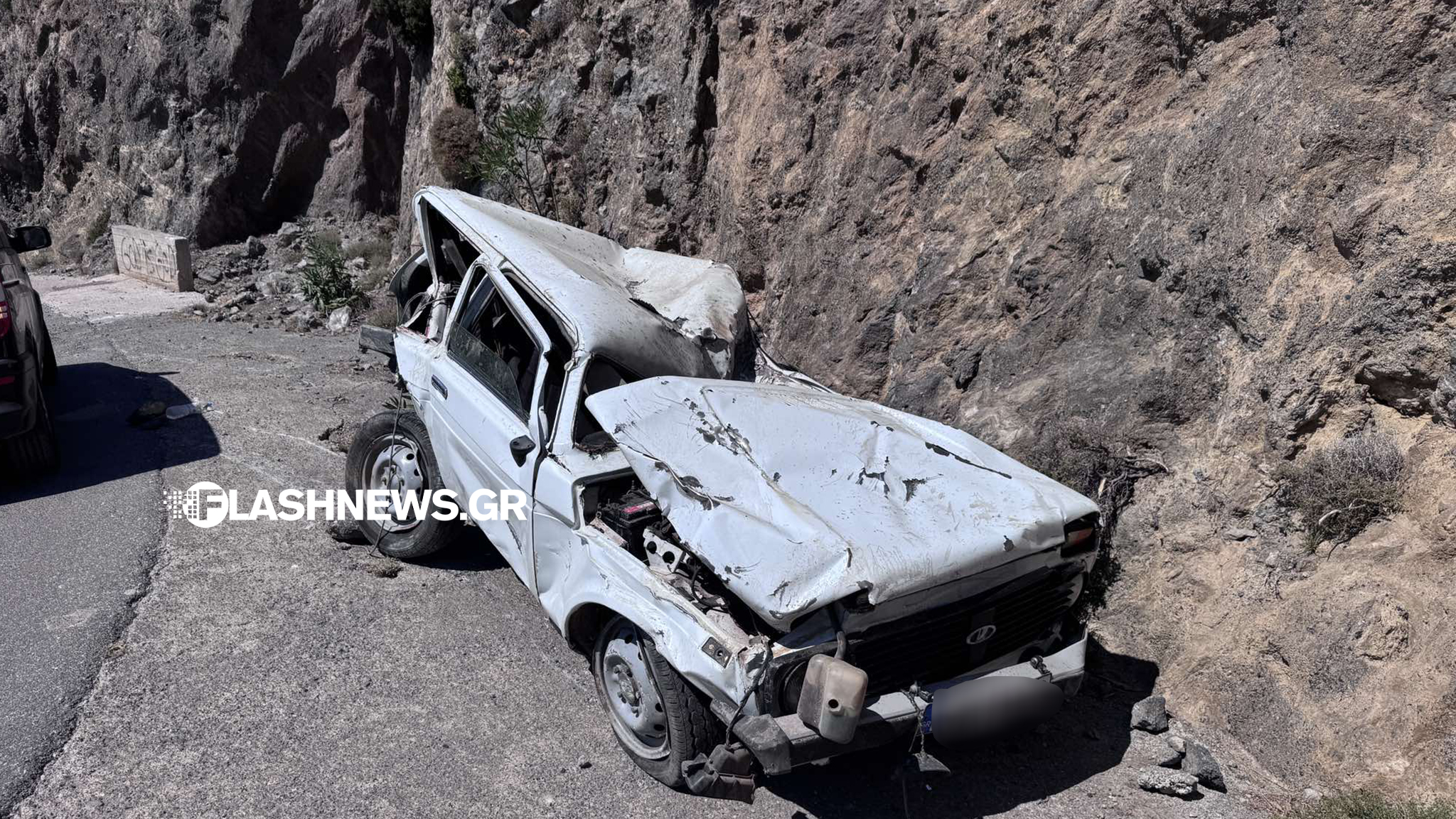 Σοβαρό τροχαίο στην Κρήτη: Ολοσχερώς κατεστραμμένο το όχημα μετά την πτώση από τον γκρεμό – Σοκάρουν οι εικόνες