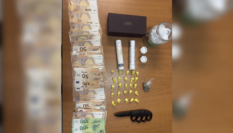 Ακολούθησε έρευνα στην κατοικία του, όπου εντοπίστηκαν και κατασχέθηκαν μικροποσότητα κάνναβης, μία σιδηρογροθιά με ενσωματωμένο μαχαίρι καθώς και 6.100 ευρώ, ποσό που οι αρχές εκτιμούν ότι σχετίζεται με παράνομη δραστηριότητα.