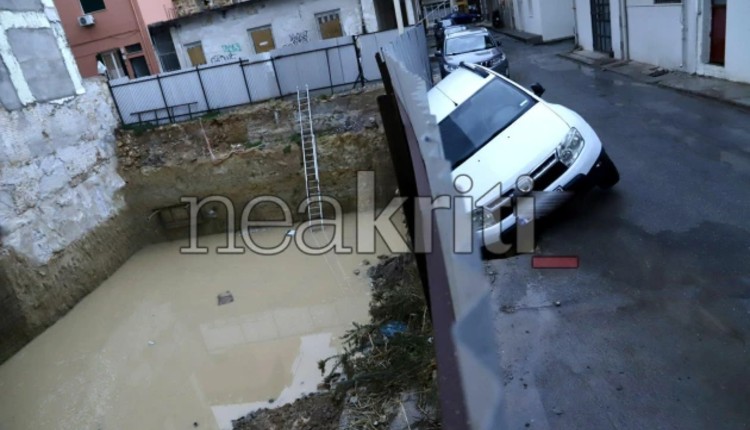 Ηράκλειο: Υποχώρησε το οδόστρωμα σε γειτονιά της πόλης – Αυτοκίνητο παγιδεύτηκε σε βαθύ λάκκο