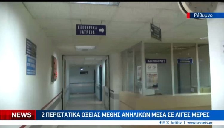 17χρονη μεταφέρθηκε το Σάββατο στο νοσοκομείο Ρεθύμνου με οξεία μέθη, ενώ την Κυριακή δύο 16χρονοι εντοπίστηκαν να καταναλώνουν αλκοόλ σε κατάστημα, ενώ οι υπεύθυνοι συνελήφθησαν. Πρόκειται για περιστατικά που αναδεικνύουν με δραματικό τρόπο μια ανησυχητική πραγματικότητα..δεκάδες παιδιά κάθε χρόνο, ακόμη και μόλις 12 ή 13 ετών, βρίσκονται εκτεθειμένα στον κίνδυνο του αλκοόλ, φέρνοντας στο φως την ανάγκη για άμεση δράση και υπευθυνότητα από την κοινωνία και τις αρχές.