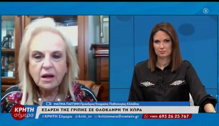 Η Ματίνα Παγώνη , Πρόεδρος της Εταιρείας Παθολογίας Ελλάδος καλεσμένης στο Κρήτη Σήμερα μας περιγράφει τα χαρακτηριστικά της γρίπης και τα συμπτώματα της , την ίδια ώρα που τα περιστατικά και οι νοσηλείες αυξάνονται διαρκώς .