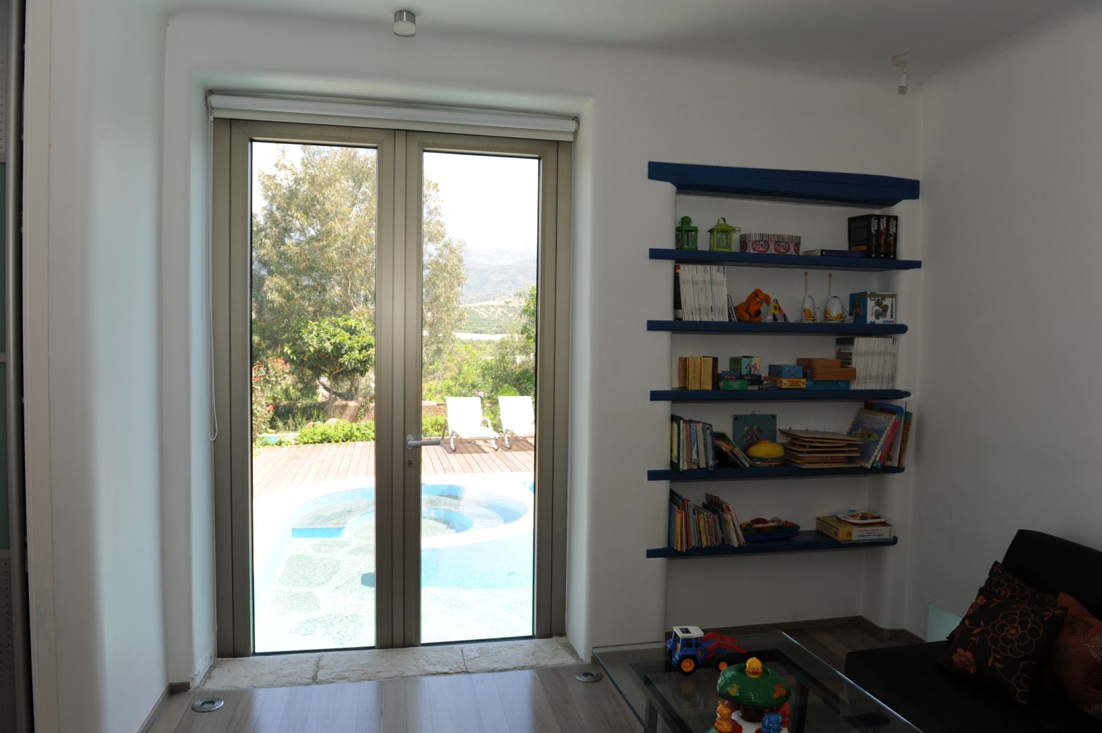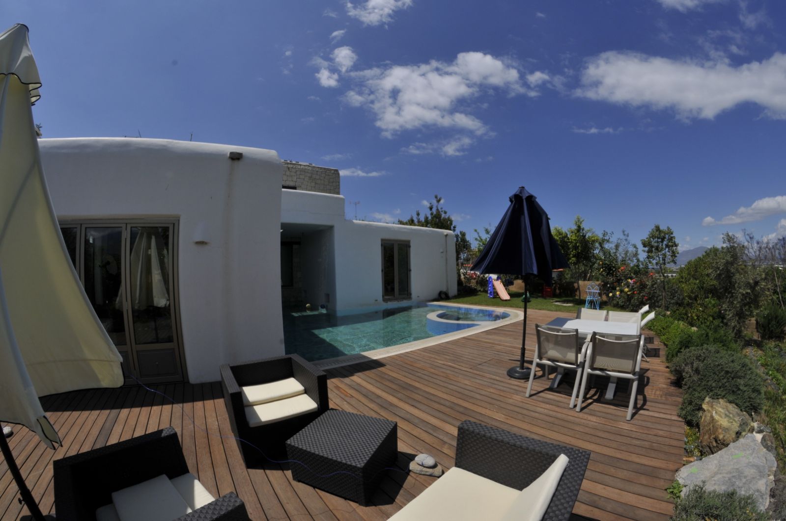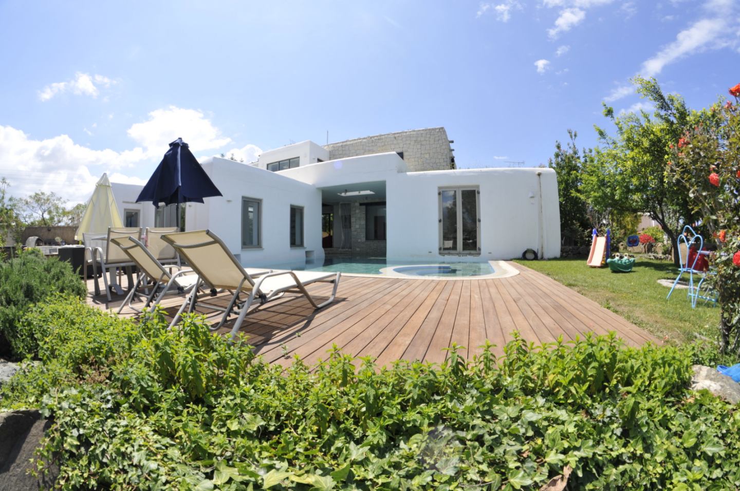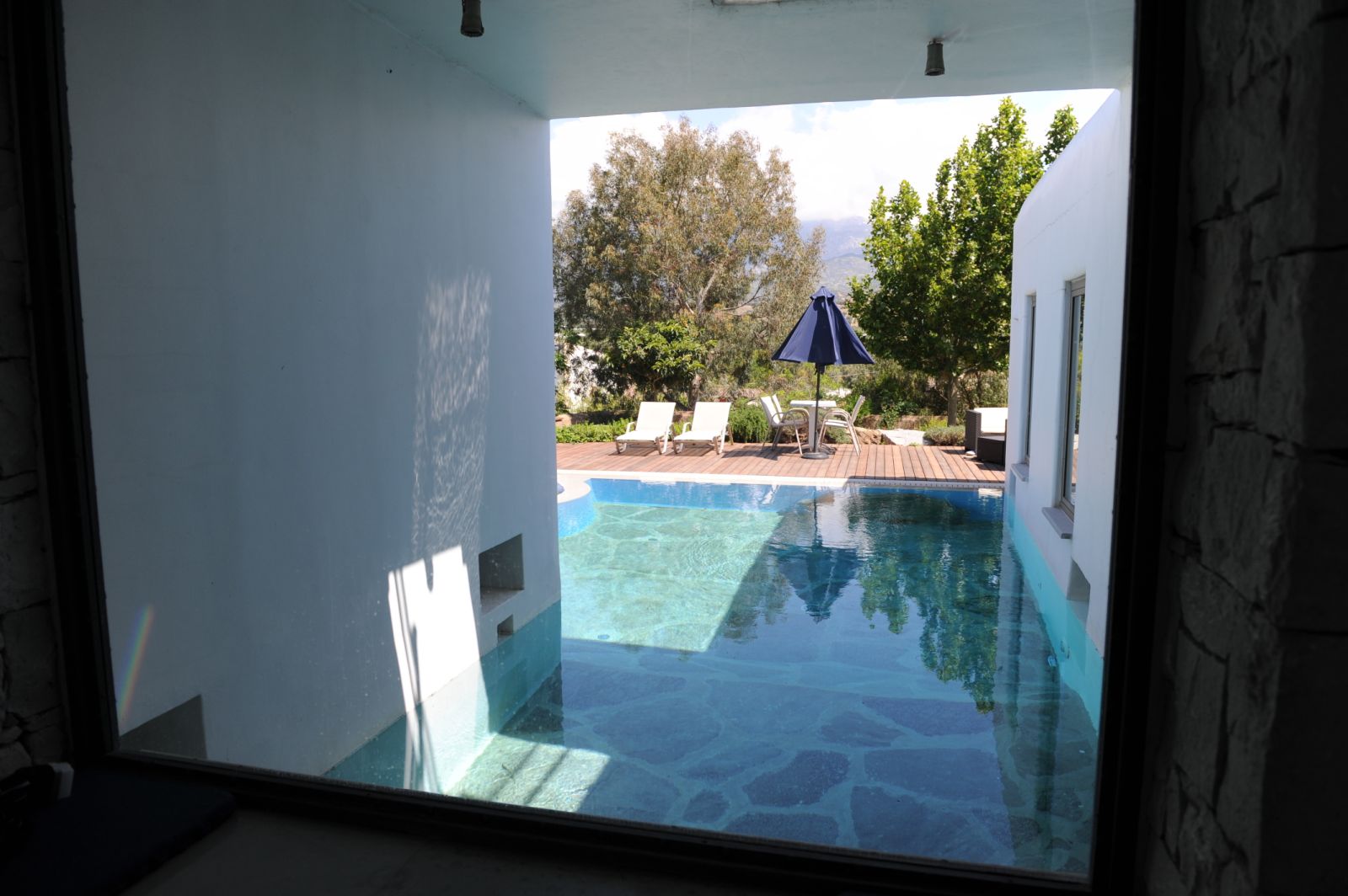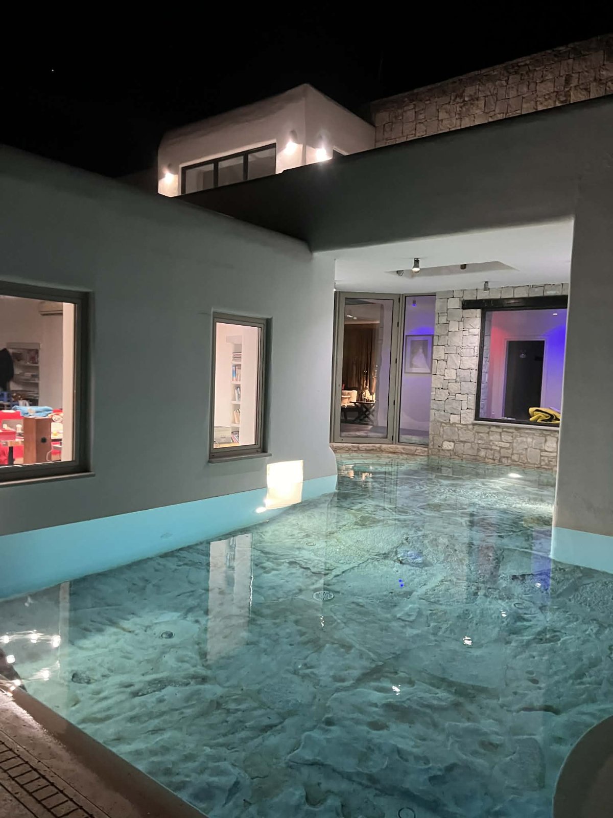 Πισίνα υπερχείλισης 50 τ.μ. με 3 επίπεδα βάθους, 2 υδρομασάζ και βυθό από πέτρα θαλάσσης
