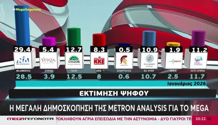 Η μεγάλη δημοσκόπηση του MEGA Κύριες Ειδήσεις phaistosnews.gr 20/02/2026 08:30 Κοινοποίηση/Share FacebookTwitter Η μεγάλη δημοσκόπηση της Metron Analysis για το MEGA megaΔημοσκόπηση Κοινοποίηση/Share FacebookTwitter
