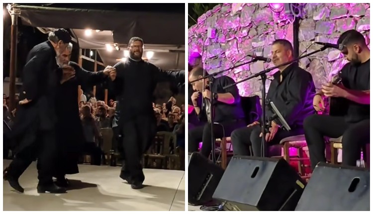 Κατά τη διάρκεια της βραδιάς, οι παπάδες σχημάτισαν κύκλο και πιάστηκαν χέρι-χέρι, χορεύοντας κρητικό συρτό υπό τους ήχους της λύρας και της ορχήστρας του Μανώλη Κονταρού.