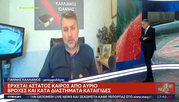 Έρχεται άστατος καιρός από αύριο, βροχές και κατά διαστήματα καταιγίδες – Η πρόγνωση του Γιάννη Καλλιάνου