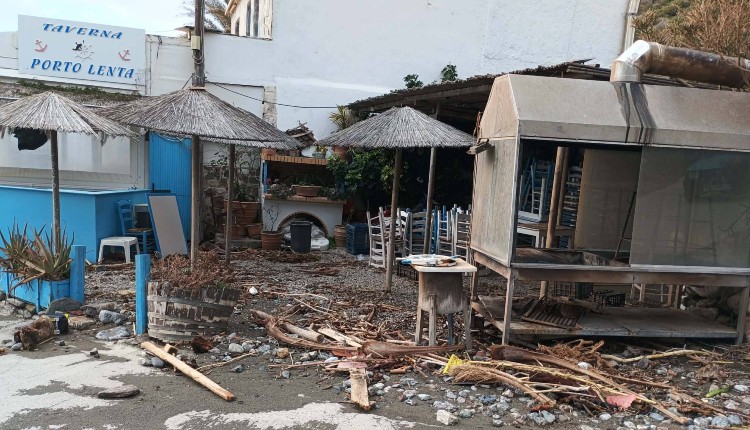 Μεσαρά: Τα κύματα εισέβαλαν σε επιχειρήσεις στον Λέντα – Εικόνες καταστροφής